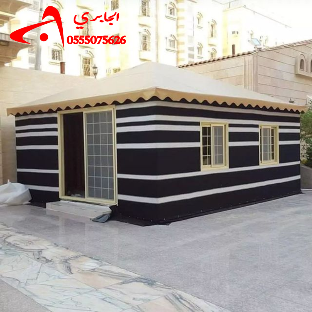 نوفر لكم بيوت شعر ملكية من القماش الألماني شغل مُرتب و3 عوازل من الجوانب.