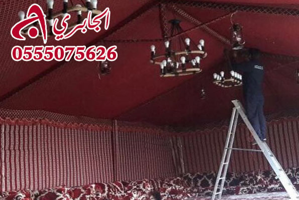 لتفصيل بيوت شعر ملكي فاخرة أو بيوت شعر عادية يُسعدنا فى مؤسسة الجابري أن نوفر لكم بيوت الشعر بأنواعها الملكية والعادية فلدينا بيوت شعر بجميع المقاسات مجهزة بالكنب والسدو والكراسي العادية والملكية والطاولات الدائرية والمستطيلة والمكيفات الصحراوي والمراوح والسجاد والمشب وأبواب ودرايش ألمنيوم وضهريات وجلسات أرضية وأفياش ولمبات حسب المواصفات التى يطلبها المستخدم.