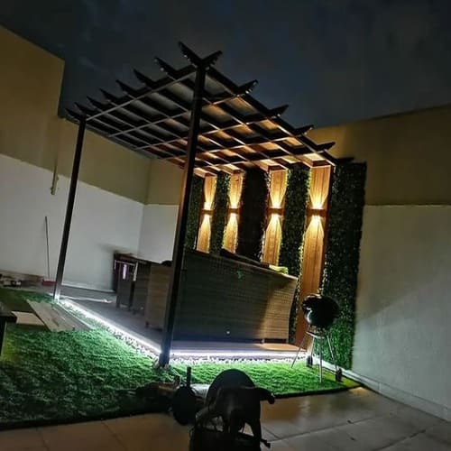 نوفر أشكال جميلة من البرجولات الخشبية تم تقسيمها لمربعات هندسية فارغة أو تغطية هذه الفراغات بالقماش أو اللكسان الملون حسب رغبتك.