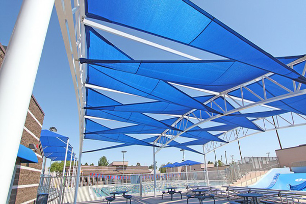 -نوفر أجمل أشكال مظلات القماش لتغطية المسابح وأشهرها المظلات الشراعية ومظلات الشد الانشائي لتغطية مسابح الفنادق.