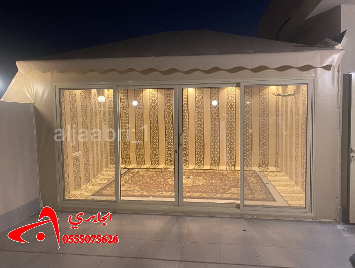 نوفر لكم بيوت شعر ملكية من القماش الألماني شغل مُرتب و3 عوازل من الجوانب.